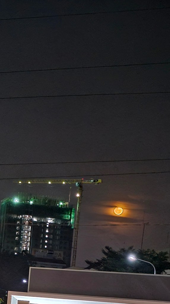 Lâu lâu được ngày trăng đẹp, tôi là hỏi anh xe ôm: “Trăng hôm nay đẹp dữ thần hả anh!” – Ảnh biểu: “Đường kẹt xe thấy nội cha, rảnh đâu mà ngó mấy cái đó”.