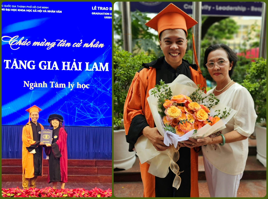 Má nói: “Kỳ này má có tiền rồi, để má mua bó bông mừng con trai má tốt nghiệp.”